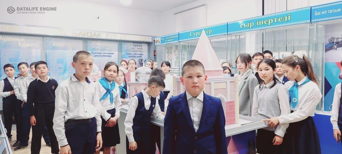 0 "Болашаққа бағдар: рухани жаңғыру" мақаласы аясында оқушыларға өңір өмірімен, тарихымен, елдімекенімізде жүргізіліп жатқан археологиялық қазба жұмыстарының барысымен, сондай-ақ ұлттық этнографиялық экспонаттармен жақыннан танысуға мүмкіндік жасау мақсатында №1 мектеп-гимназиясының 6 сыныптың "Жас Ұлан" ұйымы оқушыларына музейге саяхат ұйымдастырылды.