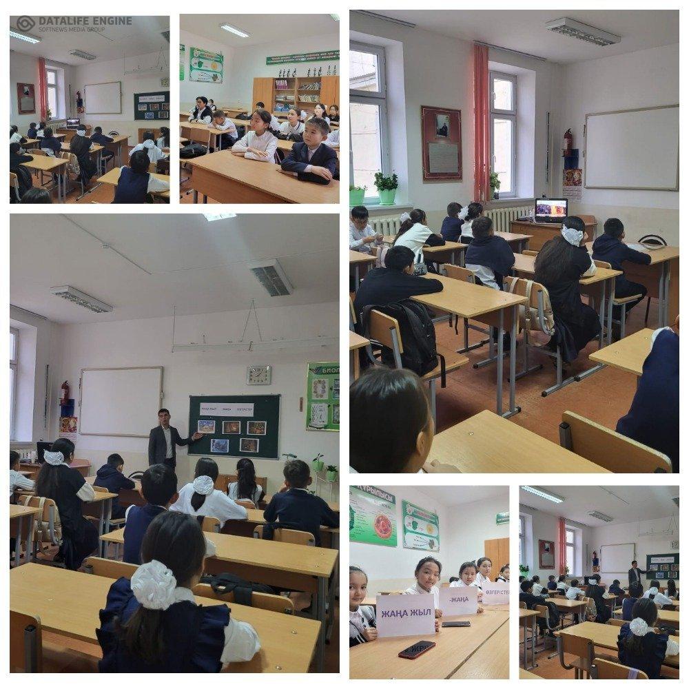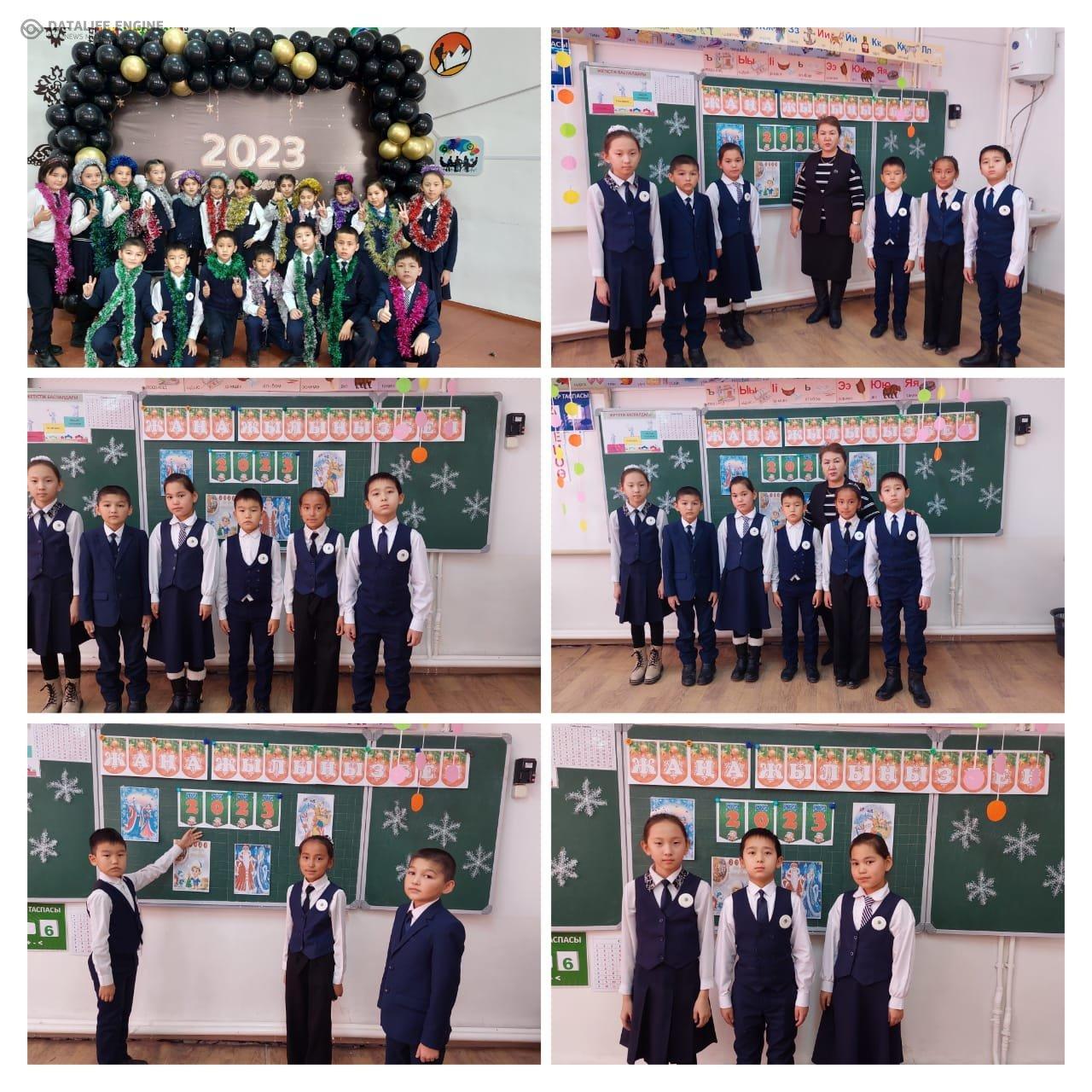0 Балаларға жылдың төрт мезгілі, Жаңа жыл мерекесі туралы түсінік беріп, балалардың тақпақты мәнерлеп оқуы, әнмен биді нақышына келтіріп орындау қабілеттерін арттыру және әсемдікке, ұйымшылдыққа тәрбиелеу мақсатында №1 мектеп-гимназиясында "Қош келдің, жаңа жыл" тақырыбында 1-10 сынып оқушыларына бірыңғай сынып сағаттары өткізілді.