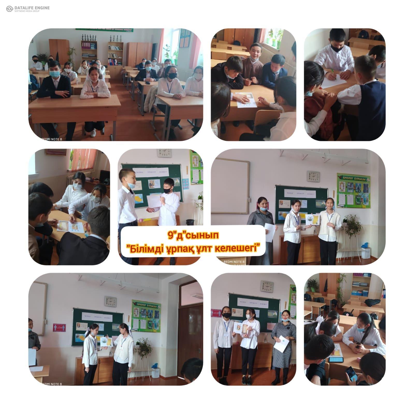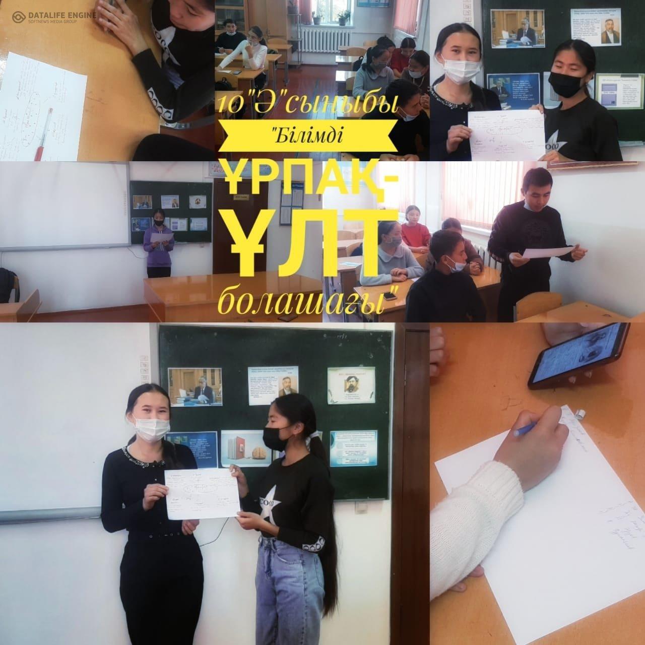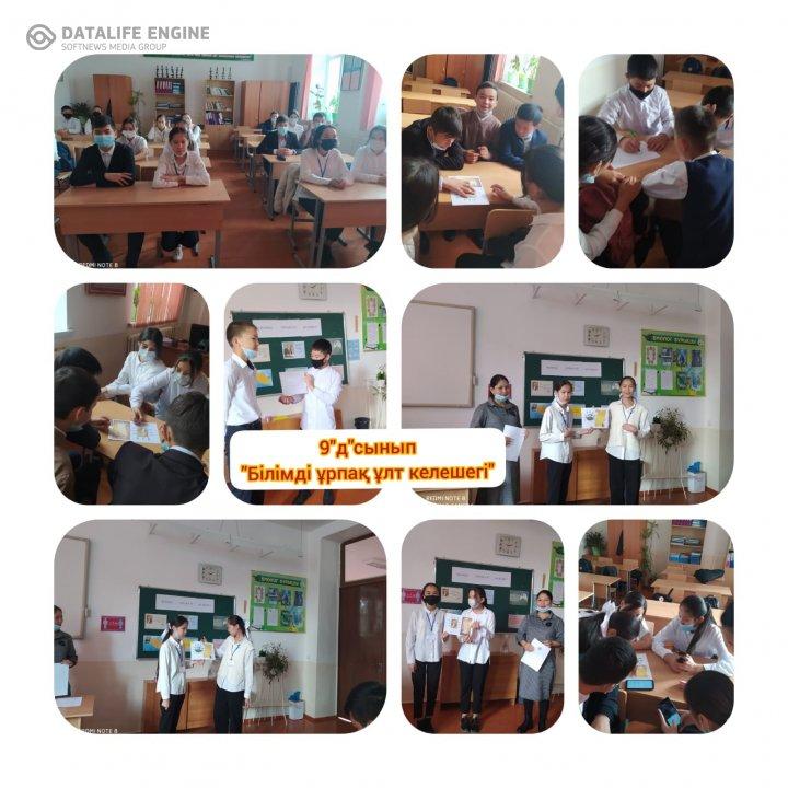 0Оқушылардың білімдерін ортаға салу, оқушылардың дүниетанымдарын кеңейту, тіл байлығын, сөздік қорларын молайту, логикалық ойлау қабілеттері мен шығармашылық қиялын дамыту мақсатында 8-11 сынып оқушыларына "Білімді ұрпақ-ұлт келешегі" тақырыбында сынып сағаттары өткізілді.