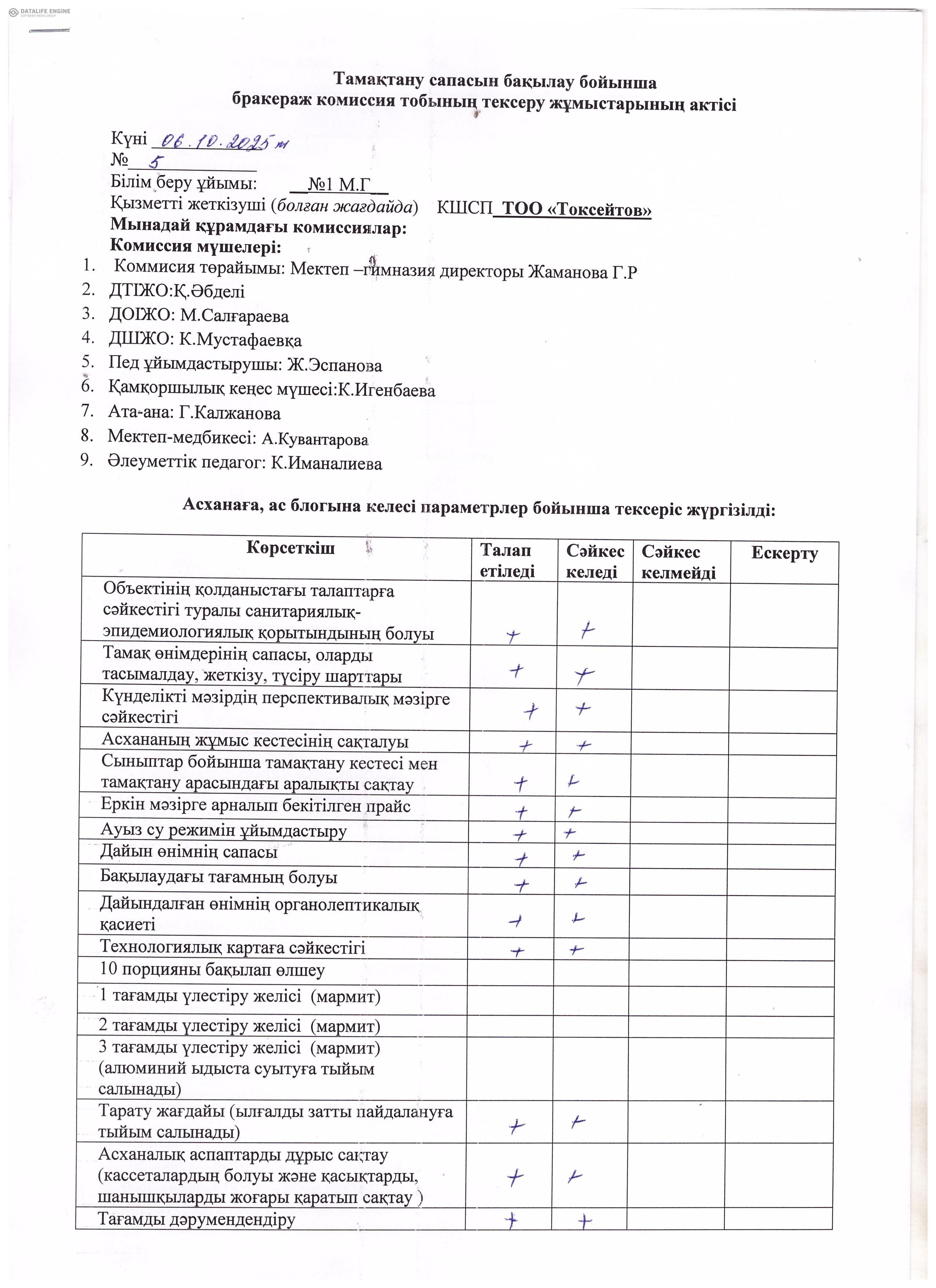 Қазақстанның 40 жылдығы орта мектебі КММ » Эксперимент жетістіктері » БРАКЕРАЖДЫҚ КОМИССИЯ МҮШЕЛЕРІНІҢ КЕЗЕКТЕГІ ТЕКСЕРУ СӘТІ